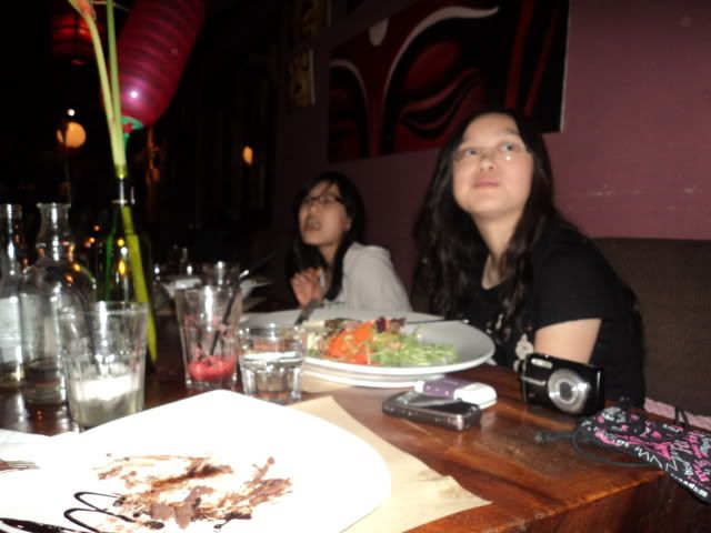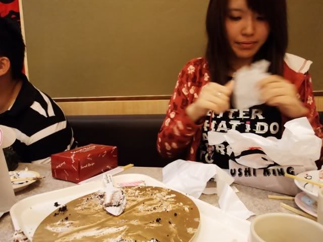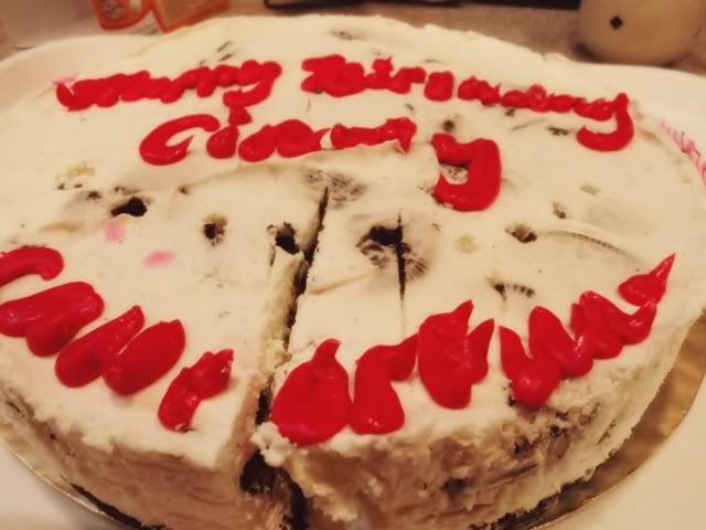 Suddenly the lights were turned off, and a cake with candles was brought out. I asked ''Whose birthday?'' And my bro said ''yours''. I was shocked :x , it was an oreo cheesecake from secret recipe :D