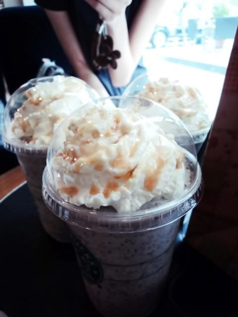 We went to starbucks to have our fav caramel cream! (: