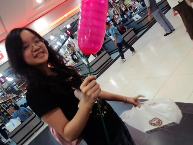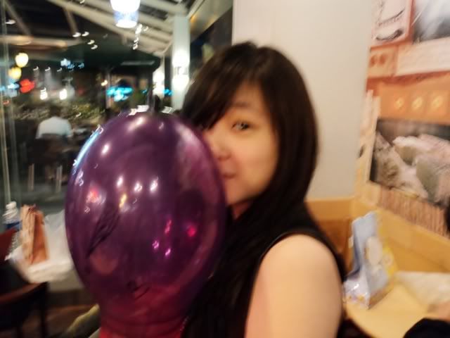 Met up with Kim, Viv & chung at spring first. Kim & viv surprised me with a balloon that has the word B*** on it, so adorable :} They forced me to bring it everywhere lor! D: Cyn joined us later. We watched When in Rome ! nice movie too.