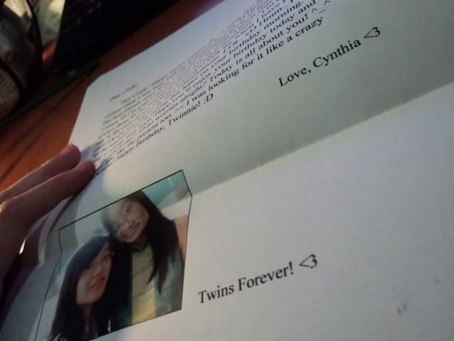 Loved the present, thanks for making that day so special for me ! :} So touched, really. Love you guys kao kao :}